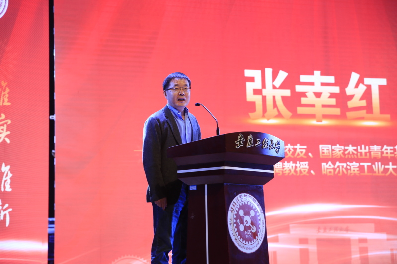 张幸红代表校友对母校的培养表示感谢,对学院成立表示祝贺,并勉励同学们秉承学校“尚德敏学 唯实惟新”的校训,传承“材料人”锲而不舍、金石可镂的精神,珍惜大学的宝贵时光,认真学习,脚踏实地,为国家的关键技术攻坚克难,为祖国的强大做出贡献。部分校友以视频的形式为学院揭牌送来了诚挚的祝福,给予学弟学妹们殷切的期待和良好的祝愿。