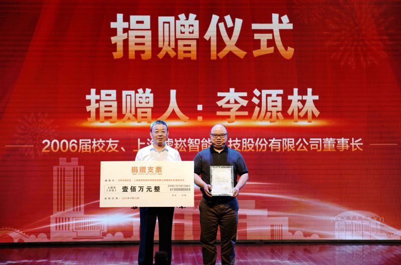李源林校友为学院捐赠奖学金奖教金一百万元,王勇智接受捐赠并受学校教育发展基金会的委托为李源林颁发捐赠证书。李源林表示捐赠奖学金和奖教金是感恩母校和老师的培养,希望激励学弟学妹们在材料科学领域勤奋学习、攻坚克难、有所建树,做一个有社会责任感和家国情怀的有用人才,也希望能够起到抛砖引玉的作用,汇聚更多校友资源投入到学校和学院建设中来。