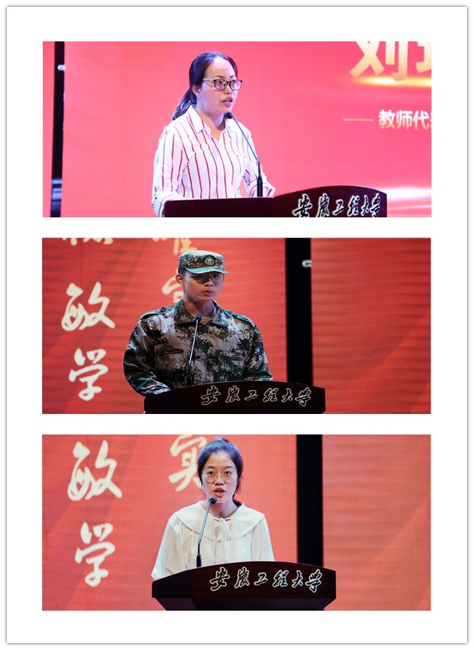 会上新生代表王昊哲、老生代表邵启婷、教师代表刘琪分别发言。