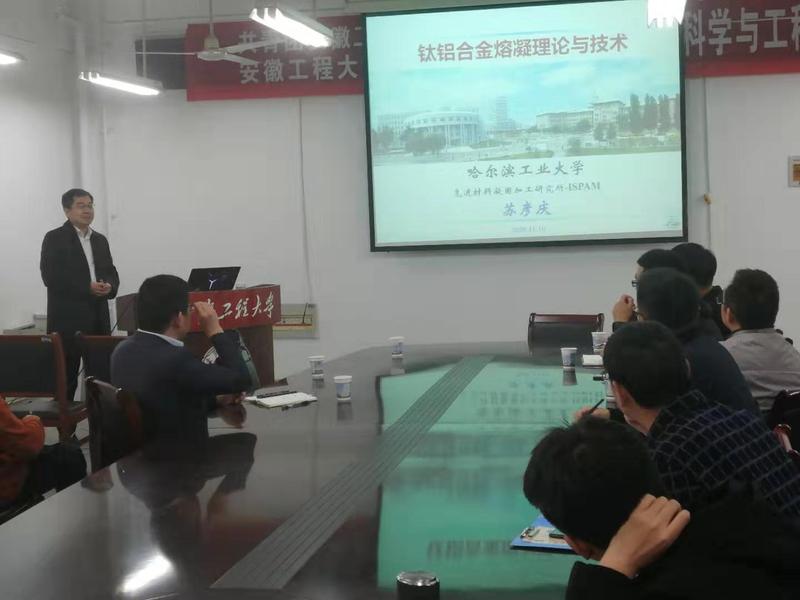 11月10日下午,哈尔滨工业大学苏彦庆教授,应材料学院邀请来我院作关于“钛铝合金熔凝理论与技术”的学术报告,学院教师和研究生参加了此次报告,报告由王刚副院长主持。