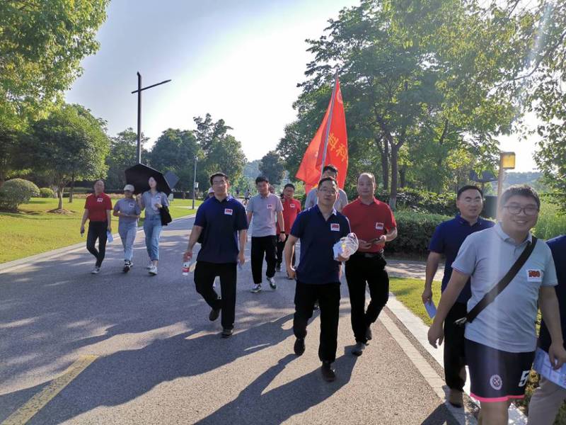 活动伊始,学院党委书记王勇智在宣布活动正式开始时强调,开展此次健康徒步走活动对于纪念共产党百年奋斗历程、激励教师以饱满的精神面貌开展工作具有重要的纪念价值和深远的现实意义。在学院领导的带领下,老师们统一着装,从南门出发以昂扬的斗志、铿锵的步伐环绕雕塑公园和神山公园徒步走,最终回到南门集合,全程5.2公里。一路上,教师们情绪高涨、精神抖擞,步履轻盈、阔步向前,烈日骄阳丝毫没有减弱大家的热情,欢快的人群与美丽的风景交相呼应,形成了一道靓丽的风景线。