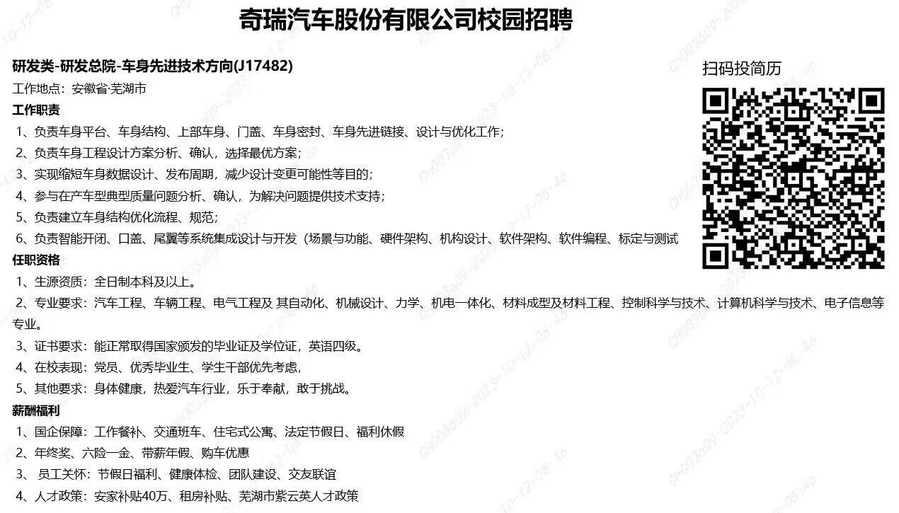 | 3 | 2023年10月13日晚上6:30 | 师活101 | 奇瑞汽车股份有限公司 | |