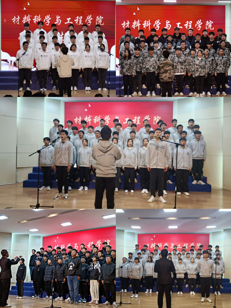 五个新生班级全部参与,合唱红色经典歌曲。比赛前,各班级精心选歌,认真排练。比赛现场庄严隆重,每个新生班级都努力将最好状态呈现给观众,领唱、诗朗诵等元素的融入更是丰富了大合唱形式。经过激烈的角逐,材科211班、材科212班、材控213班分别获得比赛的一二三等奖。本次新生大合唱比赛在一片热烈的掌声中落下了帷幕。
