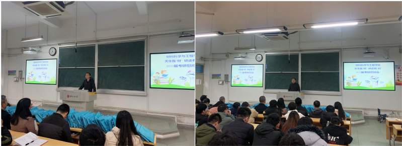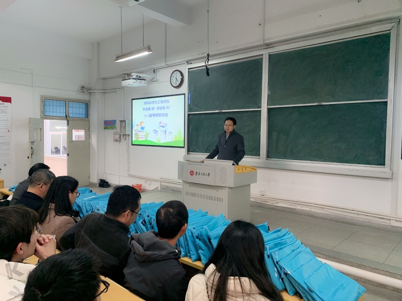 为鼓励2022届材料学院考研学生坚持不懈,自信迎考,12月9日下午,我院在2J206举行天生我“材”,研途有“料”--2022届考研学生慰问会。学院党委书记王勇智、院长左如忠、副院长朱协彬和刘琪、教师支部书记和系负责人、团委书记以及毕业班辅导员参加慰问活动。活动由院长左如忠主持。