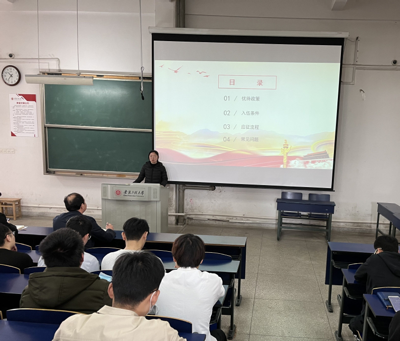 赵成婧解读了征兵入伍相关政策,介绍了入伍条件、应征流程,现场解答了学生提出的相关问题,通过此次动员会充分调动毕业班应征入伍的积极性,强化同学们服兵役的责任感和参军保卫祖国的意识。
