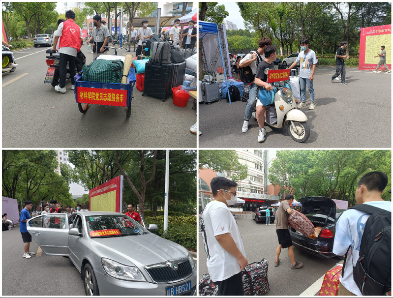 9月3日,学院迎新工作人员、志愿者提前到位,按照工作部署有序指导新生报到核验、登记、发放报到材料,引导新生完成入学图像采集,解答新生遇到的问题疑惑。在报到现场,新生签名墙、考研光荣榜,一个个名字,一张张笑脸,留下了属于新生们的青春印记。志愿者在现场向新同学介绍增材制造研究院、3D打印产品,让新生进一步了解学院学科专业特色,增强专业认同感。学院专门设置党员示范岗,发挥党员先锋模范作用,成立“材料学院党员志愿服务车队”,教师党员利用私家车、学生党员利用电动车帮助新生搬运行李、送达宿舍。迎新第一天,学院迎新工作组各司其职、默契配合,用热情的问候、周到的服务给2022级新生留下“美好材料院”的第一印象。