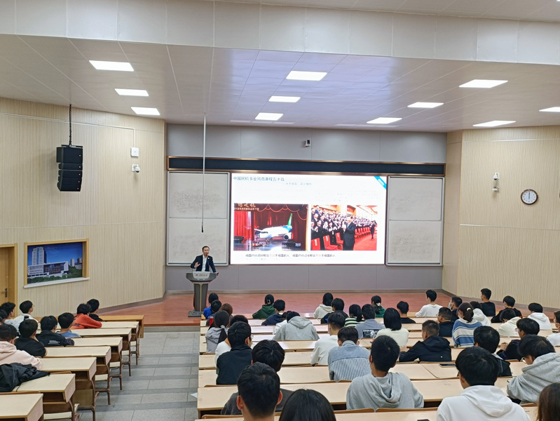 10月21日晚,华夏云天航空发动机维修有限公司总经理黄小飞应咕咕番 党政邀请,在2教报告厅为学院2022级新生做题为《从一个叶片到民航强国》的专题报告。