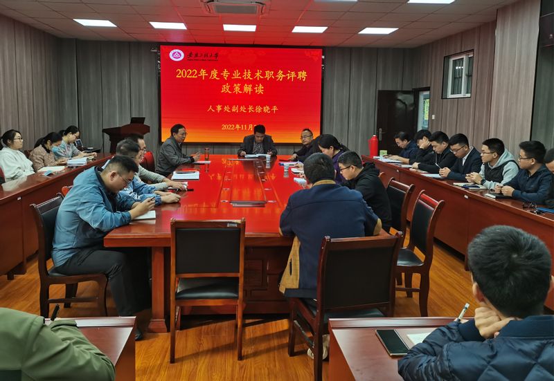 11月2日下午,人事处副处长徐晓平、师资与职称科科长吴敏应邀在B座216会议室为咕咕番 教师举行2022年职称评审政策解读辅导。学院领导班子成员、相关教职工参加报告会。会议由院长左如忠主持。
