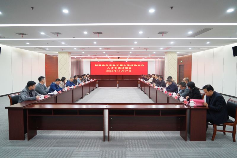 五个学院负责人简要介绍了优势专业、研究方向及学生就业情况。郎溪县重点产业企业负责人就人才、产学研需求与学校开展互动交流。
