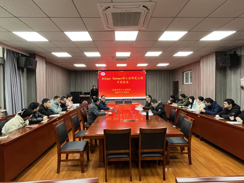 Attaur Rahman博士以“Synthesis and Characterization of Piezoelectric Ceramics for Energy Harvesting and Energy-Storage Applications”为题,分别从选题背景与意义、研究思路、研究内容、工作计划、创新点等方面进行了详细汇报。答辩专家认真听取了Rahman博士的汇报,对相关研究内容表示出浓厚兴趣。答辩会现场交流气氛热烈,讨论深入,最终专家组一致同意通过Rahman博士的进站开题工作汇报,并对后续研究工作提出了宝贵建议。在全体专家、相关人员的共同努力下,我院首批博士后进站人员开题报告工作顺利完成。