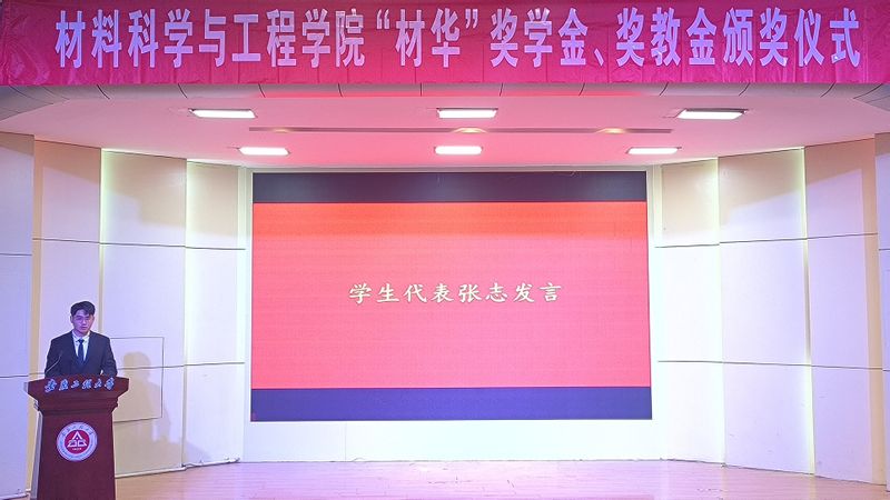 院长左如忠致辞,对获得“材华”奖教金的老师、奖学金的同学表示祝贺!鼓励他们再接再厉,戒骄戒躁,脚踏实地、埋头苦干,在攀登知识高峰中追求卓越,在为祖国和人民奋斗中书写青春的灿烂篇章!