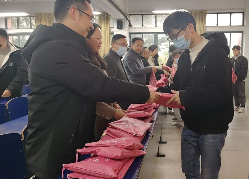 与会领导老师为每一位考研学生发放精心设计的内含学院全体教师手写的祝福语明信片、考试文具的考研慰问包。同学们纷纷表示,感谢学院领导的关心,将全力以赴度过考研前的十五天,以优异的成绩为学院增光添彩,不辜负老师们的期望。