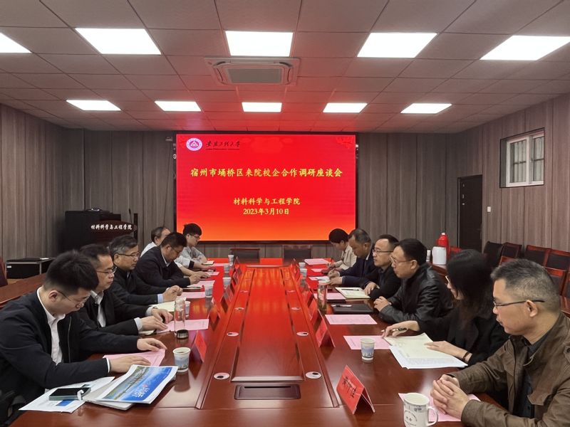 3月10日上午,宿州市埇桥区副区长孙宏义带队来校商谈产学研合作事宜,该区科技局局长祁传银、安徽车桥股份有限公司总经理徐庆辉、总工程师张德华等陪同。双方在B座216会议室举行座谈会。学校资产经营公司总经理何朝林、组织部副部长朱文明,学院党委书记郭广春、院长左如忠、副院长刘琪、学院教授委员会主任黄仲佳参会。