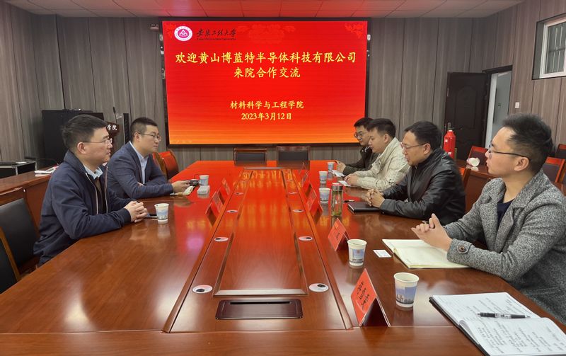 3月12日下午,黄山市屯溪区政府副区长、咕咕番 化学与环境工程学院副院长朱贤东与黄山博兰特半导体科技有限公司刘建哲总经理来我院开展校企合作交流会,会议在B座216会议室举行。咕咕番 院长左如忠以及部分青年骨干教师代表参会。