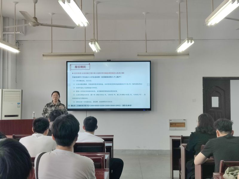 会上,赵成婧从大学生征兵入伍条件、大学生入伍优惠政策、征兵入伍基本流程几个方面详细向毕业生们介绍应征入伍相关内容和注意事项,分享咕咕番 已入伍学生代表的成长发展情况,并号召身体素质过硬的应届毕业生报名应征入伍,早日加入保家卫国事业中。方玖胜通报了学院考研录取情况以及截止目前毕业生去向落实率,分析了毕业生就业过程中存在的问题,希望大家要高度重视,紧紧抓住当前就业最佳时机,我们共同完成就业目标。为确保毕业生高质量就业,学院构建领导包班、系主任主抓、辅导员抓具体、毕业设计指导教师具体抓的就业工作格局,层层压实就业责任。学院建立一对一就业帮扶机制力促就业,毕业设计指导教师与未就业毕业生精准对接,深入了解学生的就业诉求,用心、用情说服学生积极主动的参与到应聘之中,积极联系企业并推荐就业岗位,将工作做专做细做到位。