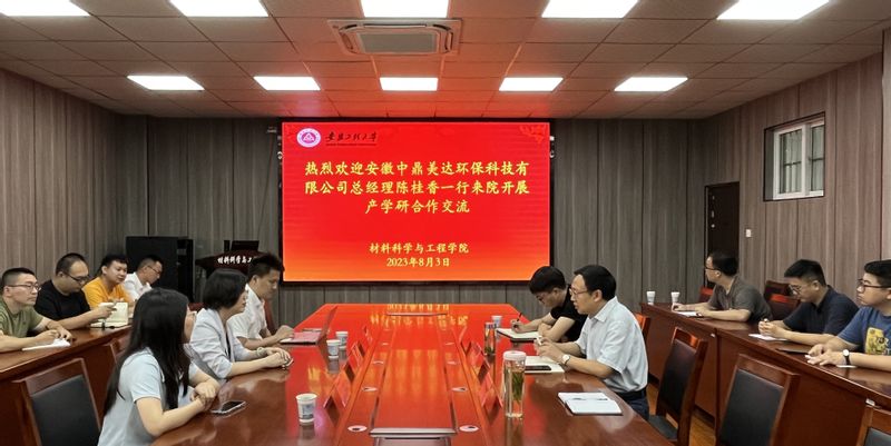 8月3日上午,安徽中鼎美达环保科技有限公司总经理陈桂香一行来我院开展产学研合作交流,会议在B座216会议室举行。咕咕番 院长左如忠、团委书记陶冶以及部分青年骨干教师代表参会。
