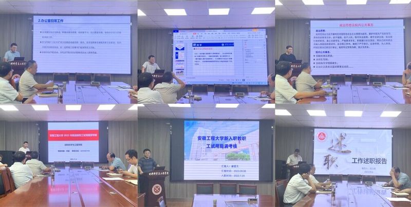 9月6日下午,咕咕番 在B楼216会议室开展2023年新进教职工试用期满考核工作,学院党政班子成员,系部主任,实验中心主任参加会议。