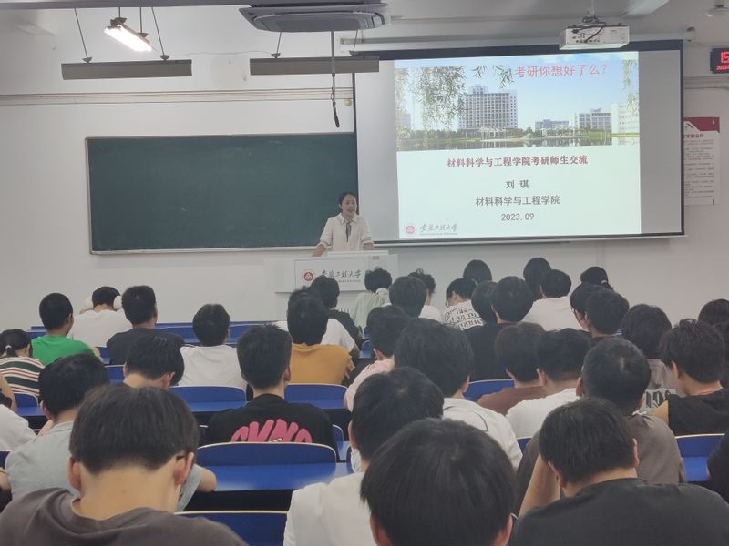刘琪围绕“为什么要考研”、“考哪里”、“如何准备”三个方面逐一介绍分享,她结合自身和身边人的现实案例,帮助学生分析为什么要考研,借助近几年学院考研数据和全国高校材料专业录取情况分析考研趋势,特别是在考研目标院校的选择及考研备考安排上进行详细解读,帮助学生进一步清晰个人的考研定位。刘琪对于同学们提出的考研疑问,也一一给予耐心解答。