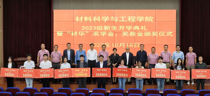 10月18日,咕咕番 2023级新生开学典礼暨“材华”奖学金、奖教金颁奖仪式在图书综合楼五楼会议室举行。校党委副书记、校友会会长苏国红,2006届校友、“材华”奖学金、奖教金捐赠人、琥崧科技集团股份有限公司董事长李源林先生,以及社会合作处、研究生部、学生处等职能部门负责人、教学科研关系在学院的相关职能部门负责人、2023级学生家长代表等应邀出席。学院党政班子成员、全体教师、2023级全体本科生和研究生参加典礼仪式。典礼仪式由学院党委书记郭广春主持。