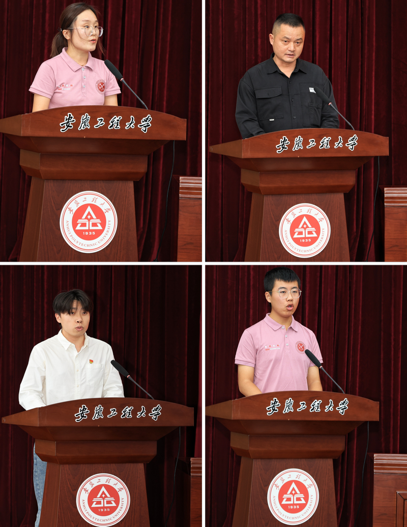 教师代表陈静、新生家长代表葛勇、老生代表常杰、新生代表江怀林分别在典礼仪式上发言。