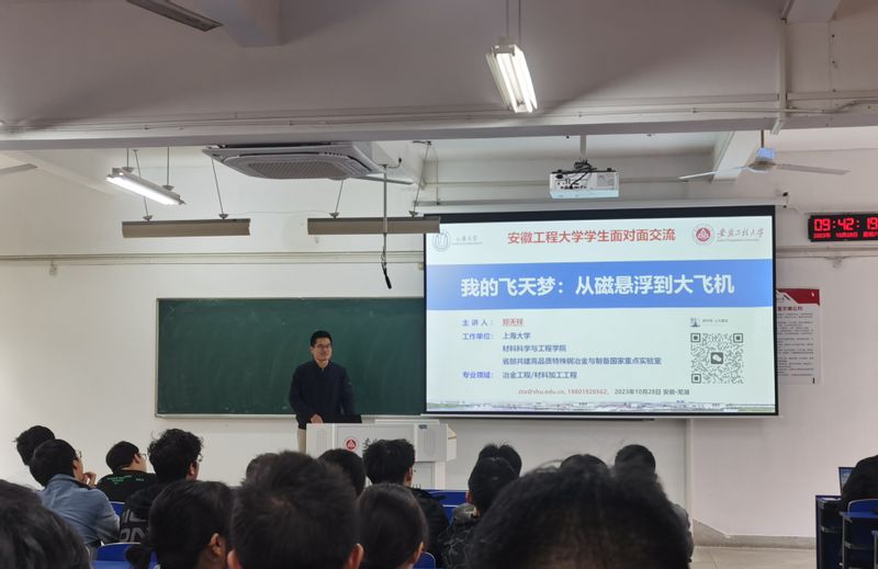 2023年10日28日上午,咕咕番 材料06级校友郑天祥、周思健、胡正杰和材料10级校友俞燕应邀在6教212教室作主题为“塑材料之型,铸梦想之翼”的报告会。报告会由学院副院长陶锋主持,材控专业22级和23级全体学生及兼职辅导员参加此次活动。副院长陶锋指出材料成型及控制工程专业拥有四十年办学历史,是材料学院的办学之源,已为社会培养了近4000名具有创新精神和实践能力的优秀人才。多年来,我们的校友们在各自的领域中取得了卓越的成就,为社会和国家的发展做出了重要的贡献。校友们一直关注和支持母校的发展,我们的每一次进步和发展都离不开校友们的大力支持和帮助。