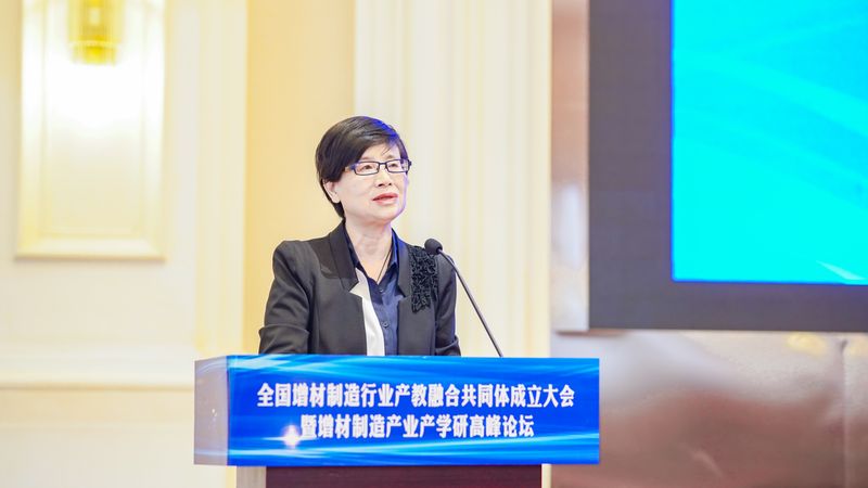 苏国红代表学校致辞,她介绍了学校的发展历史、发展内涵以及学校未来的发展目标。她表示,作为全国增材制造行业产教融合共同体发起单位,将进一步推动行业组织、院校、科研机构、上下游企业的深度交流,希望通过平台建设,推进产教深度融合、协同发展。