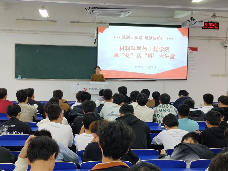 第三场讲座是由项梦辉、王闯、刘文博、晁倩倩四位优秀学生代表做个人大学经验分享交流。材科221班组织委员项梦辉,作为退伍军人的他,强调在大学要培养良好的学习习惯和生活习惯,尤其要重视宿舍的建设,并分享作为宿舍长的他在宿舍建设中的好做法。材控212班班长王闯,他分享自己如何从大一的腼腆到大三的开朗乐观的转变,鼓励大家敢于挑战自我,走出“舒适区”,超越自我。材控221班班长刘文博,他认为“行胜于言”,鼓励大家多进行体育锻炼,更建议将体育运动融入到班级活动中,增加班集体的凝聚力和荣誉感。材控221班团支书晁倩倩,同时也是演讲与口才协会演讲部部长,她用幽默的语言从班委、学生会、社团活动、活动竞赛四个方面分享她的大学经历,她认为在大学要做到“三要”:要保持好奇心;要找到真正热爱的事,并付出时间和精力;要认真学习。