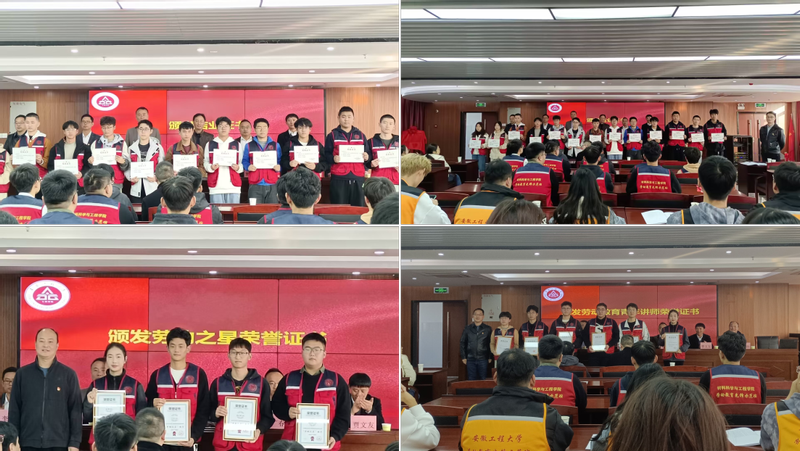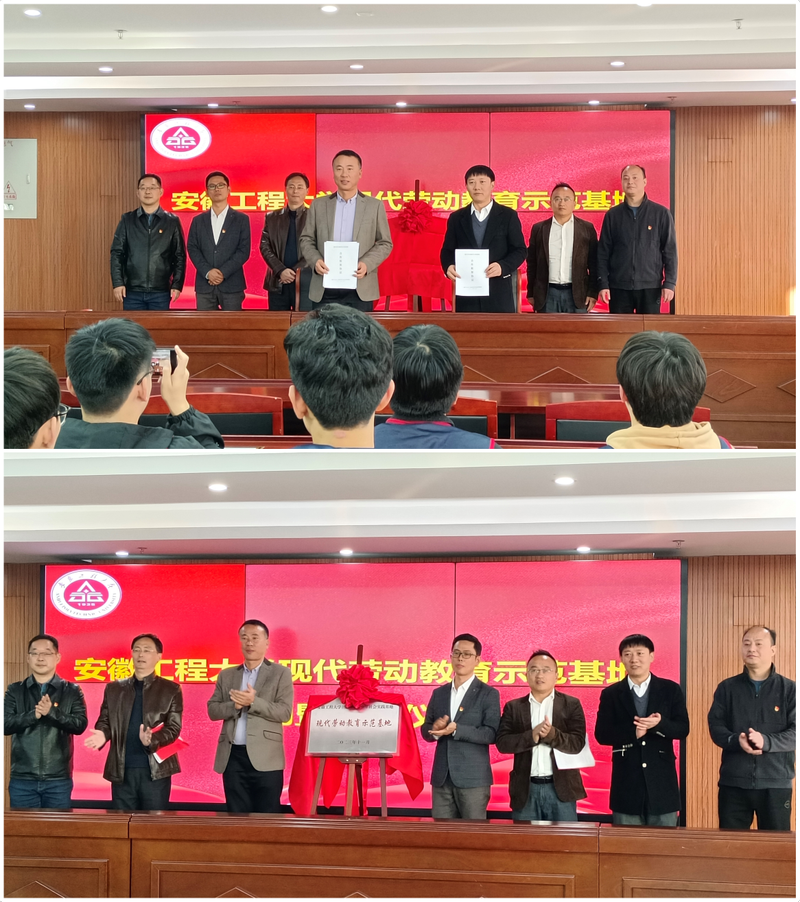 在仪式上,教务处副处长贾文友、胡小波代表双方签订了现代劳动教育示范基地共建协议;校团委书记李恒奎、胡小波共同为“现代劳动教育示范基地”揭牌;与会领导为第一期劳动教育先锋示范班成员颁发了结业证书、为第二期劳动教育先锋示范班成员颁发了录取通知书;国际工程师学院和谐社区党委书记、学生处副处长郭全根为第二期劳动教育先锋示范班授旗;咕咕番 党委副书记方玖胜、副院长陶锋分别为第一期劳动教育先锋示范班成员颁发了青年讲师荣誉证书、劳动之星荣誉证书。