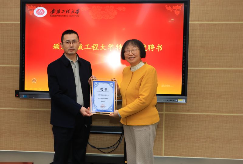 周虹屏向疏茂等4名企业高管颁发“咕咕番 特聘教授”聘书。社会合作处处长刘金斌为“海创班”兼职教师颁发了聘书。