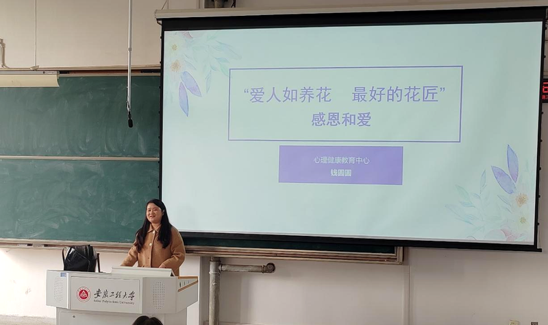 11月29日下午,学院在6J215举行“12.5”心理健康节之感恩讲座,校心理健康教育中心专职心理咨询师钱圆圆应邀作专题讲座,学院党委副书记方玖胜、全体辅导员、学院心理部成员、国家奖助学金获得者以及大一新生参加活动。