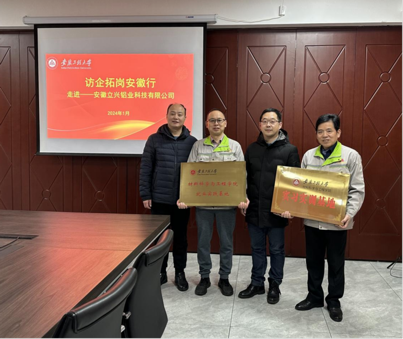 1月19日,学院一行走进芜湖市湾沚区安徽立兴铝业科技有限公司,与公司总经理朱健勇,行政副总兼党支部书记陶跃进洽谈人才培养和就业实训相关事宜。学院一行与企业签订了就业实践、实习实训协议,并举行授牌仪式。方玖胜、朱健勇共同为“咕咕番 就业实践基地”揭牌;陶锋、陶跃进共同为“咕咕番 实习实训基地”揭牌。