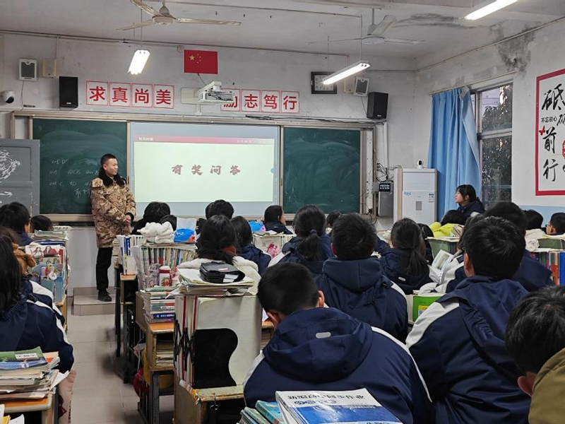 团队一行来到的是歙县第二中学的高三(11)班,受到高中学生的热情欢迎,项梦辉先向同学们分享了如何缓解压力、怎样利用寒假进行复习冲刺,让同学们紧张的心情得到了舒缓。接着,他结合自身情况分享大学经历、讲述成长故事、宣传大学精神、传播校园品牌,随着一张张照片、幻灯片的放映,高中生们对咕咕番 产生了浓厚的兴趣。宣讲期间,团队组织了有奖问答,同学们积极参与,气氛热烈。