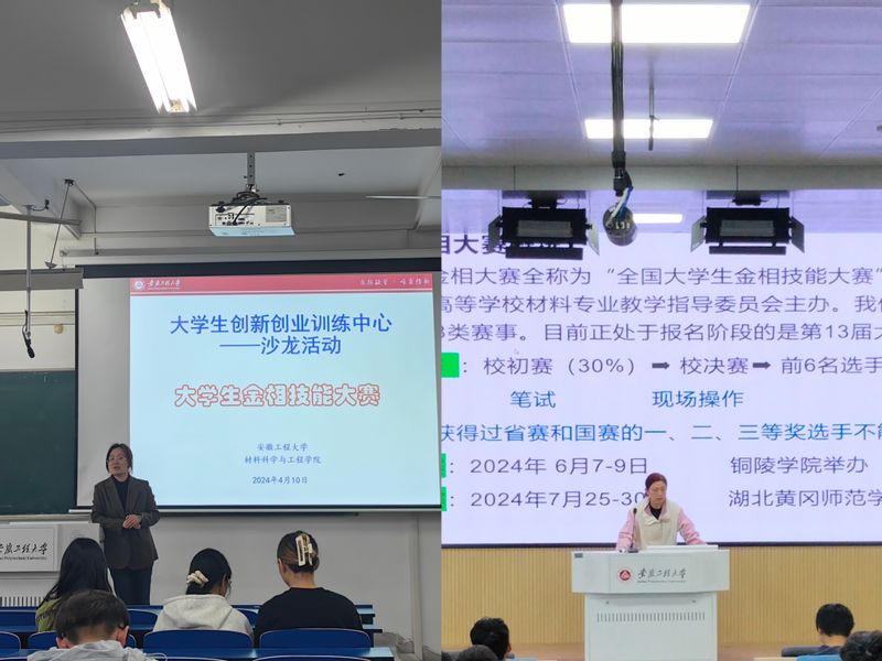 410日下午,咕咕番 在5217教室、6211教室分别举办了大学生金相技能大赛动员培训大会。学院大学生创新创业训练中心主任陈静、实验中心老师刘明朗、本科生辅导员周冬梅同全体2022级、2023级学生一起参加此次活动。