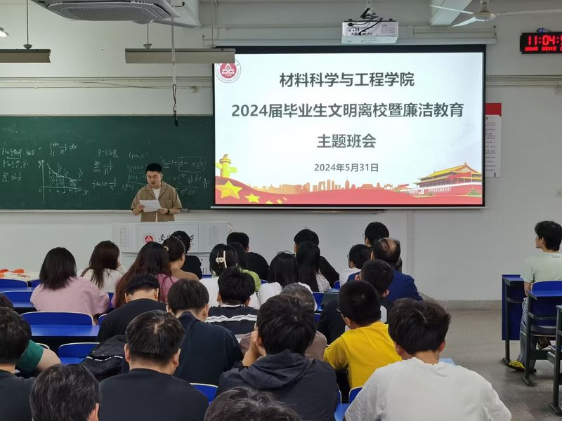 为落实《教育部办公厅关于举办第九届高校廉洁教育系列活动的通知》精神,进一步加强毕业生文明离校教育,确保全体毕业生平安、快乐离校,5月31日,咕咕番 在6J111举办2024届毕业生文明离校暨廉洁教育主题班会,院党委副书记方玖胜出席并讲授廉洁文化课。班会由毕业班辅导员田园主持。