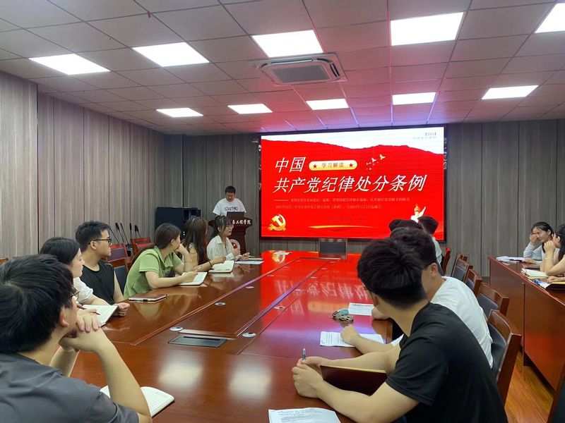 支部书记郑平以入党动机为切入点,从《中国共产党纪律处分条例》颁布及修订历史、修订内容及解读、抓好贯彻执行等三方面上主题党课。由浅入深讲解了《中国共产党纪律处分条例》的产生背景、修订历程、主要内容、作用意义,让党员们受警醒、明底线、知敬畏。针对研究生党员的特殊性,以实际案例乃至身边案例为例,指出学生党员要深刻认识开展党纪学习教育的重大意义,把握目标要求、抓住学习重点、注重学用结合。