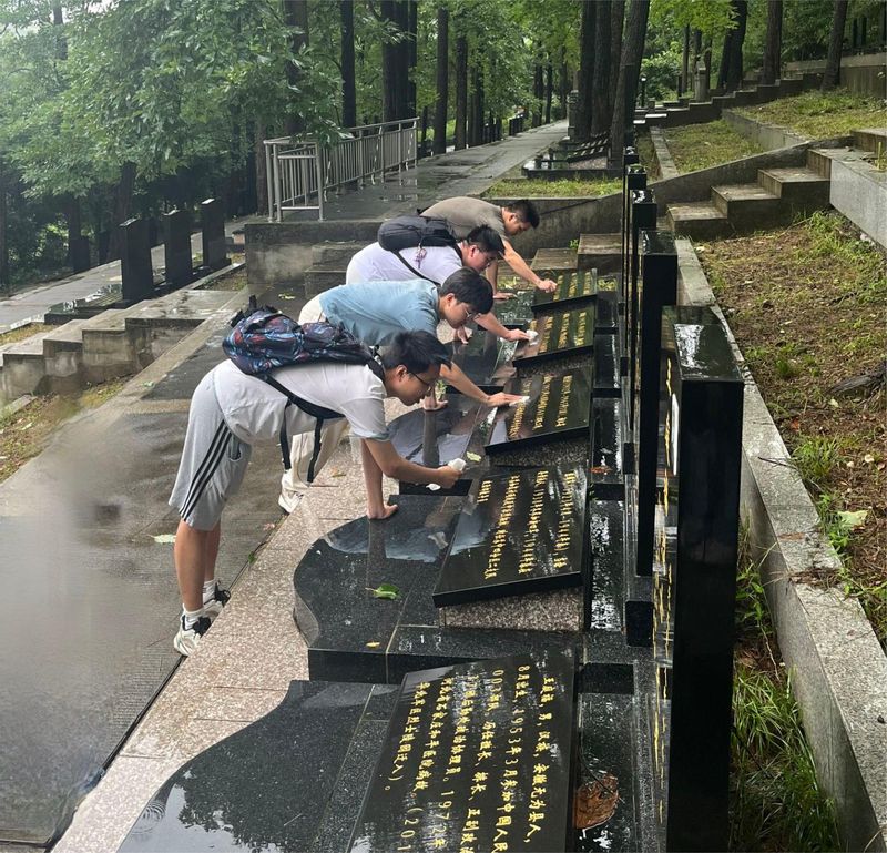 随后,在陵园的管理者带领下,团队成员沿着山路依次参观了烈士墓区、红军墓区。一座座庄严肃穆的墓碑静静矗立,仿佛在诉说着先烈们的英勇事迹。团队成员们擦拭墓碑并默哀致敬,表达对先烈的深切缅怀和崇高敬意。唐昆辉激动地说:“看到这些先烈们的英勇事迹,我感到非常震撼和敬佩。他们为了国家和人民的利益不惜牺牲自己的生命,这种精神值得我们永远学习和传承。”