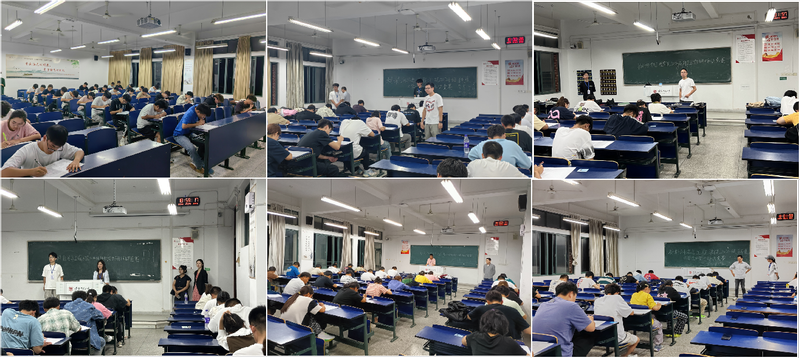 考试采取闭卷形式,历时2个小时,共设6间考场,学院团委学、学生会骨干担任监考。考试期间,学院团委负责人田园、全体2024级专兼职辅导员以及学长导员进行巡考,要求同学们要严肃考风考纪,鼓励同学们争取优异成绩。