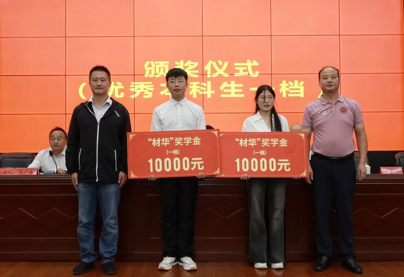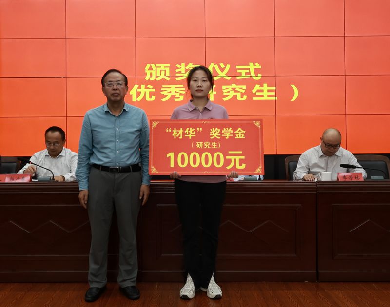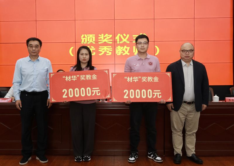 郑健、李源林共同为获得“材华”奖教金的老师颁奖。陶玉贵、杜松涛、方玖胜、刘琪、陶锋分别为获得“材华”奖学金的学生颁奖。