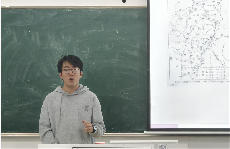 山西红色基因实践调研队队长侯睿祺,以山西省红色旅行地图为切入点,介绍了他们团队对山西红色旅行地区的实地调查活动。团队成员分散到山西各地实地考察,收集资源,分析山西文化发展的现状。同时,围绕如何撰写高质量的社会实践调研报告,他以太原为示例,针对调查情况提出一些新时代背景下融合发展提出了相关建议并与参会人员作交流分享。