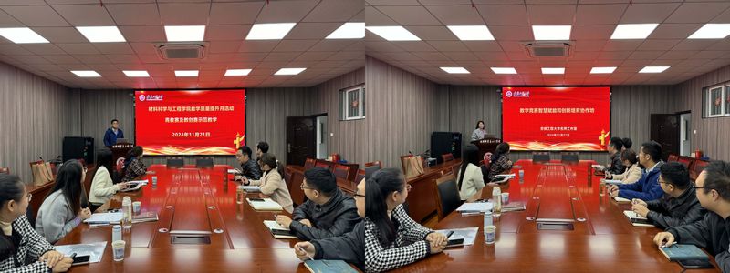 为响应学校关于2024年度教师教学创新大赛与第七届“课程思政”说课比赛的号召,11月21日,材料学院于B216室成功举办教学沙龙活动,旨在全面增强教师的教学创新能力、青教赛备战技巧,掌握与运用线上线下混合式教学方法,加快教育革新步伐。活动邀请校教学名师朱琦老师、数理与金融学院赵文娇老师担任特邀嘉宾。学院部分教学骨干教师和教学团队重点培育对象参加了本次活动。