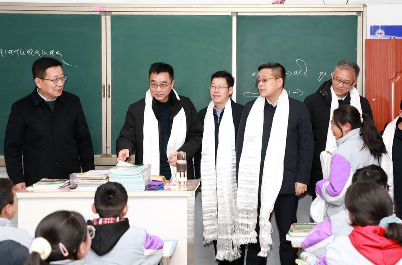 随后,郑健一行走进错那初中代培班教室,看望首届错那班师生,给藏族学生赠送了慰问礼品并一起合影留念。