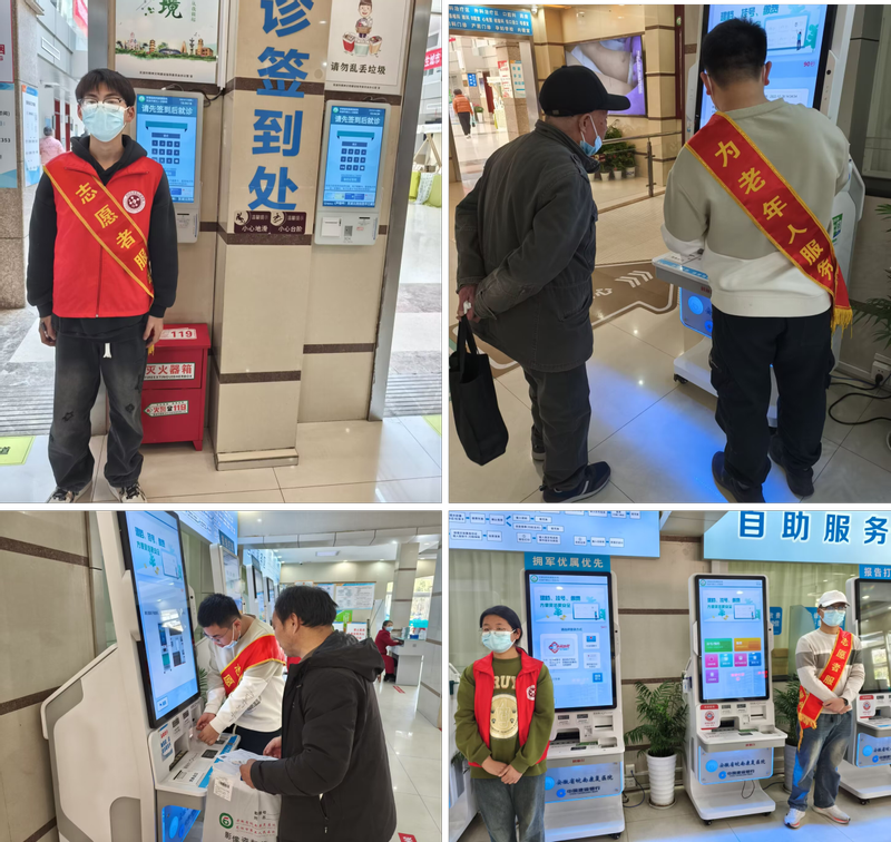 经过岗前培训的志愿者们,能够熟练操作自助挂号机,帮助老年患者完成预约挂号,并为患者们提供签到指引。志愿者们以实际行动践行雷锋精神,他们走进医院,为患者们提供导医导诊服务,以热情缓解患者的焦虑情绪,以行动协助病患办理就医手续。班长曹井强说:“许多老人面对智能设备会感到紧张,我们需成为他们的‘临时子女’。在活动中,志愿者们弯腰讲解操作步骤,通过细致的服务消除老年群体的‘数字鸿沟’”。