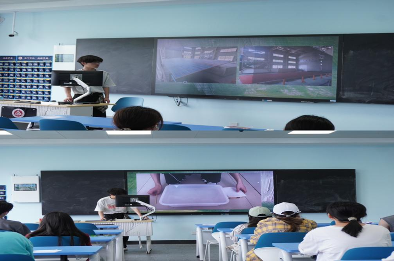 理论学习后,实践环节在阳台展开。同学们分组体验“抄纸-浇纸-晒纸” 流程,将苔藓、蕨类、花瓣等自然素材嵌入纸浆,创作 “植物标本宣纸”。清水拂过竹帘的沙沙声中,一张张融合春天气息的个性化宣纸逐渐成型。“原来造纸不是简单的‘搅拌’,力度和角度都会影响纸张的质感!”2023 级学生李雨桐捧着自己制作的花草宣纸感慨道。