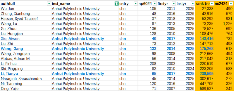 近日,斯坦福大学与爱思唯尔共同发布了2025年“全球前2%顶尖科学家”榜单。材料学院王刚教授、谢爱文博士和李天宇博士成功入选年度科学影响力排行榜,这也是他们连续第二年进入该榜单。