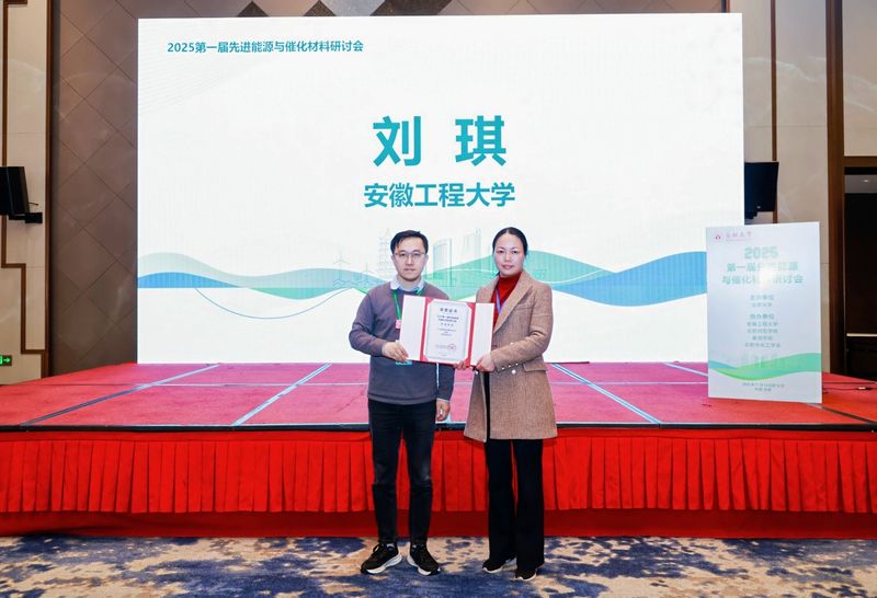 本次研讨会聚焦能源存储、催化材料、低碳技术等前沿方向,吸引了来自全国多所高校及科研机构的专家学者。材料学院在会议组织与学术交流中发挥了重要作用。王刚担任大会共同主席,参与会议的整体策划与执行;刘琪在大会上作了题为《CO2还原高效光催化剂设计》的特邀报告,围绕光催化技术在碳中和背景下的应用前景与研究进展进行了深入分享,引起与会专家的广泛关注与讨论。
